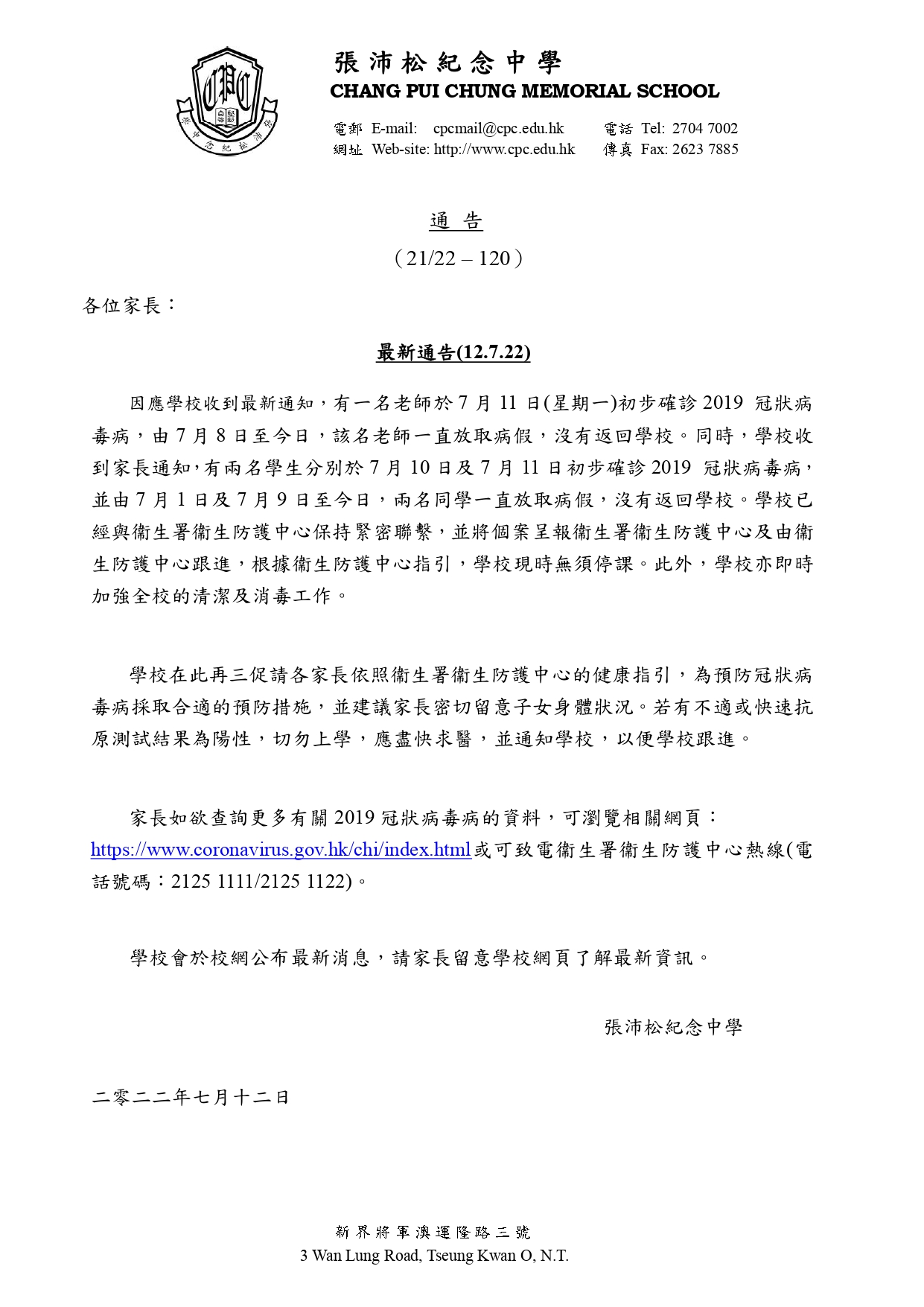 最新通告(12.7.22)