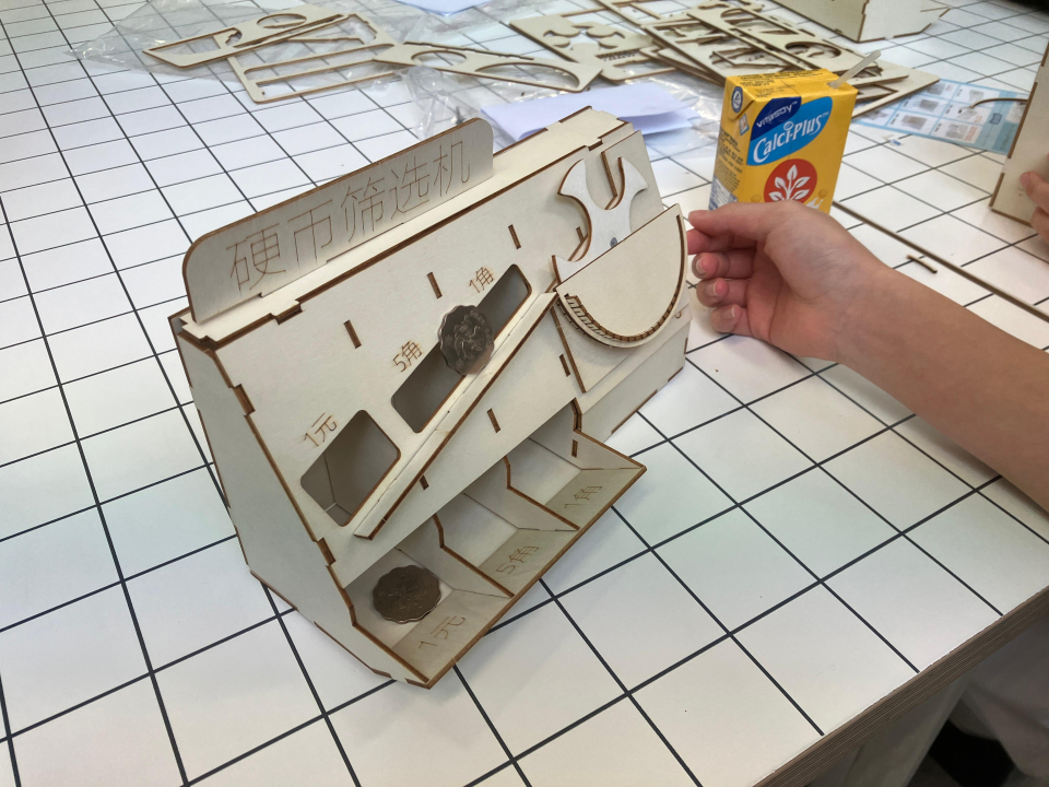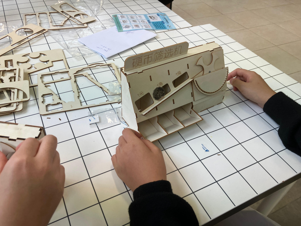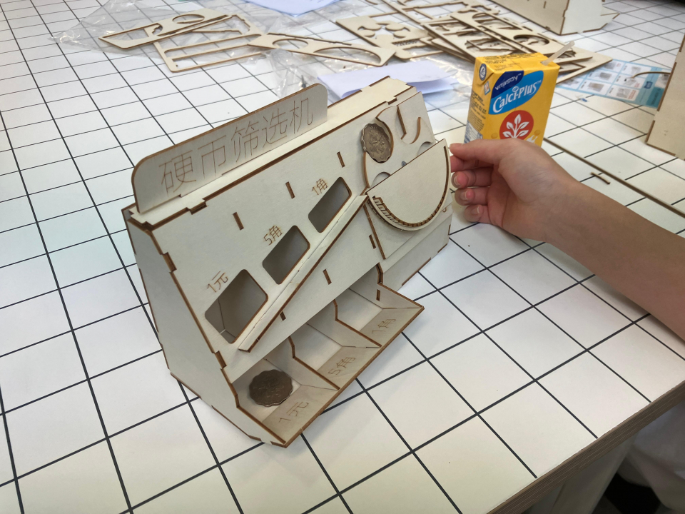 數學科舉辦「硬幣分類器STEM工作坊」,打破汽水機分辨投幣金額的迷思。老師指示同學量度各硬幣大小和厚度,再讓同學製作硬幣分類器模型,從中了解模型如何因應硬幣厚度,讓它們通過不同通道,從而辨識投幣金額。活動有趣味,同學完成後,都迫不及待取出硬幣,測試它的成效。