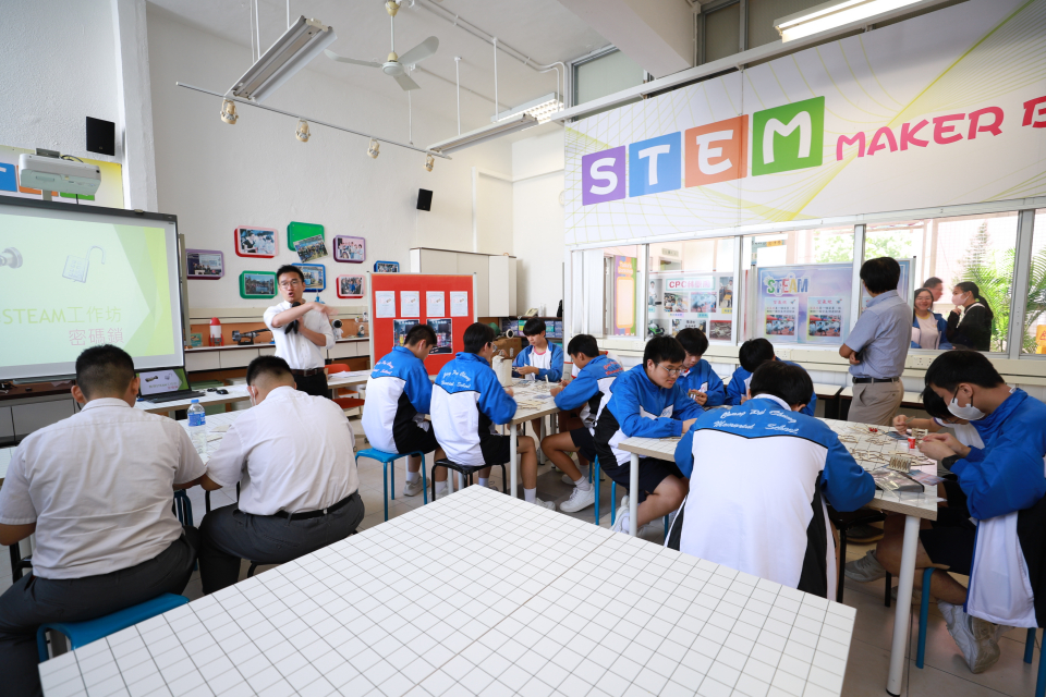 為讓同學認識密碼鎖的原理,數學科舉辦「密碼鎖解構STEM工作坊」。老師講解密碼鎖原理,指導同學動手製作密碼鎖,透過活動驗證所學,了解到轉盤、預設密碼背後刻度與卡扣的關係。