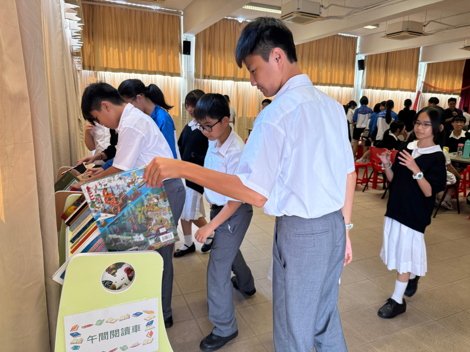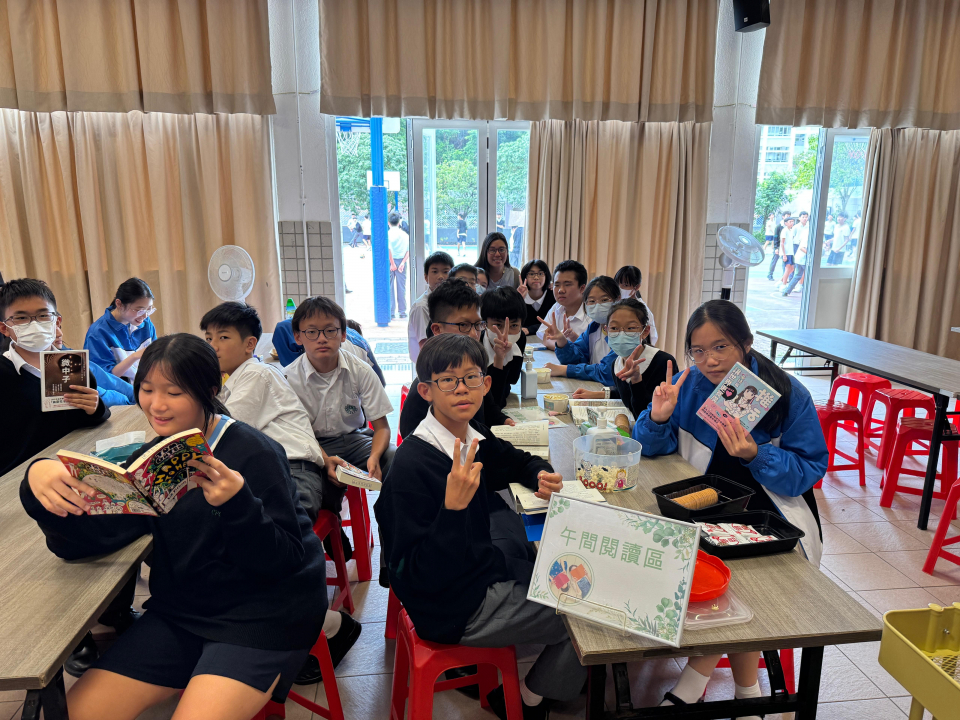 為讓同學把握碎片時間,培養閱讀習慣,圖書館安排午間閱讀車,提供小食,並邀請同學演奏鋼琴,營造舒適寫意的閱讀空間。班主任亦陪伴同學一起閱讀,提高同學閱讀動機。希望同學午膳不單吃飽肚子,也在書中得到精神食糧。