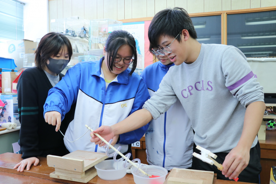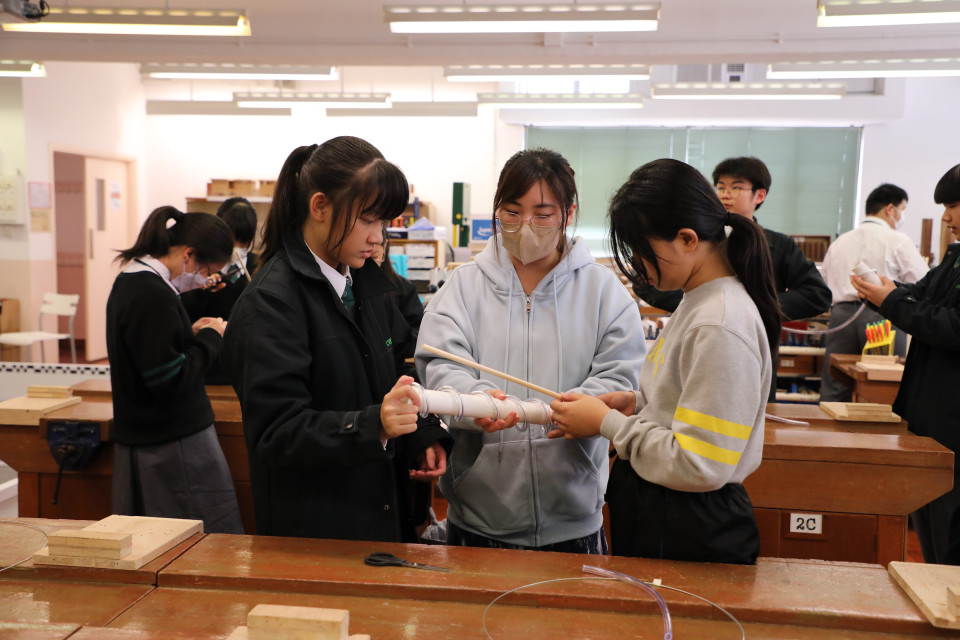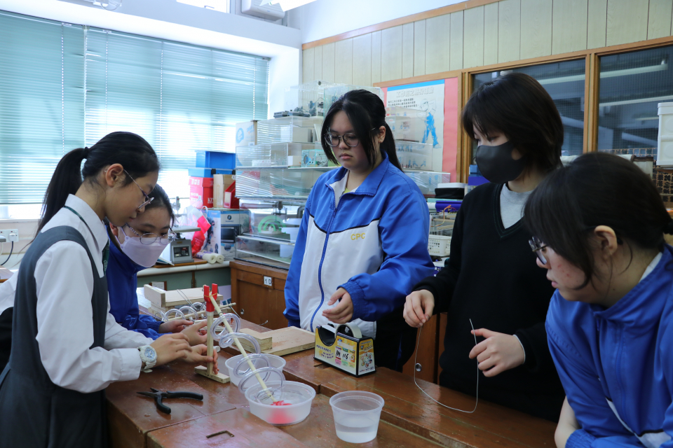 同學學習以螺旋機制,將水從低處傳輸至高處。要成功做到,同學須計算木支架的高度、與水源的距離,確保喉管以最佳角度抽水,並在持到最佳點後加上支撐架子和旋轉手柄提高運作效率。老師讓同學不斷嘗試、摸