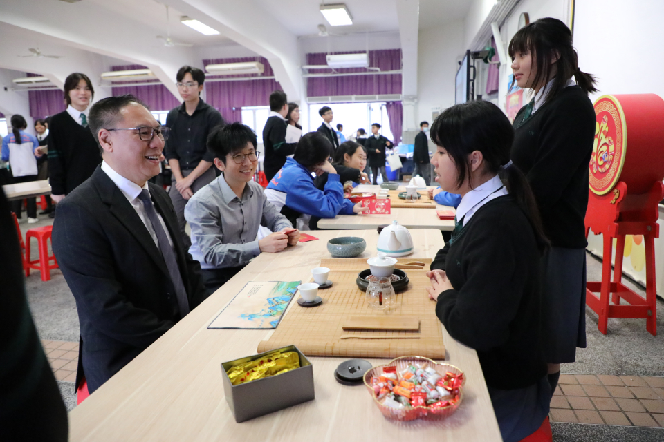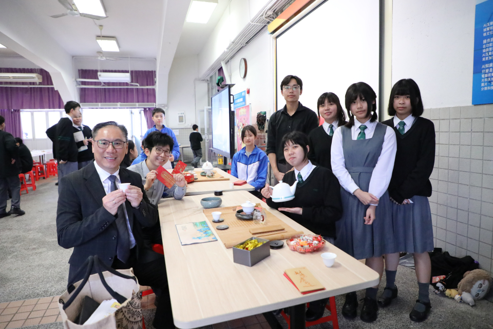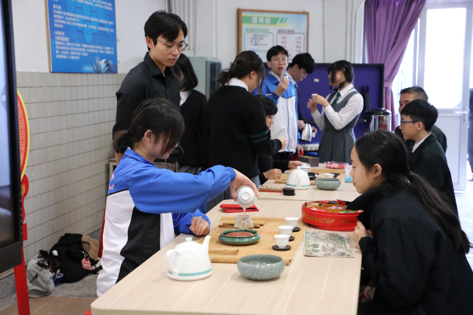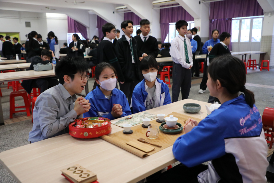 學會為同學擺佈茶席,以清香鐵觀音以及校園記者早前錄製的賀歲影片向大家「拜晚年」,領大家感受春的清新和生機。茶藝同學又以茶為喻,贈言同學,在新一年意念覺悟、身心康泰。