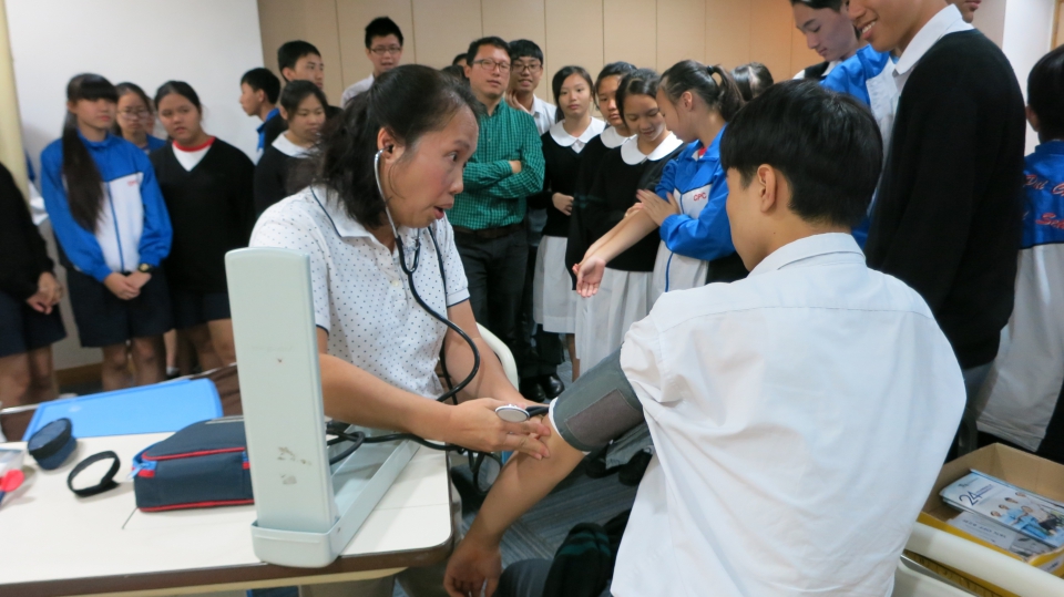 當日香港醫護學會主席葉先生為同學分析了醫護界就業前景,介紹了各種醫護職位、薪酬及晉升階梯。同時,透過不同的互動體驗活動,讓同學了解醫護器材,讓同學增加對醫護服務行業之認識,為入行做好準備。