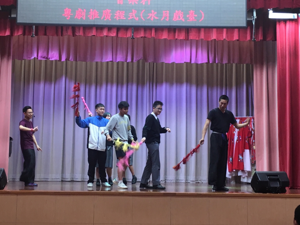 粵劇團體「水月戲臺」舉行粵劇推廣工作坊王侯偉先生作講解及示範,講者為同學們簡介中國戲曲的源流、行當、表演元素等,並為同學示範粵劇選段。