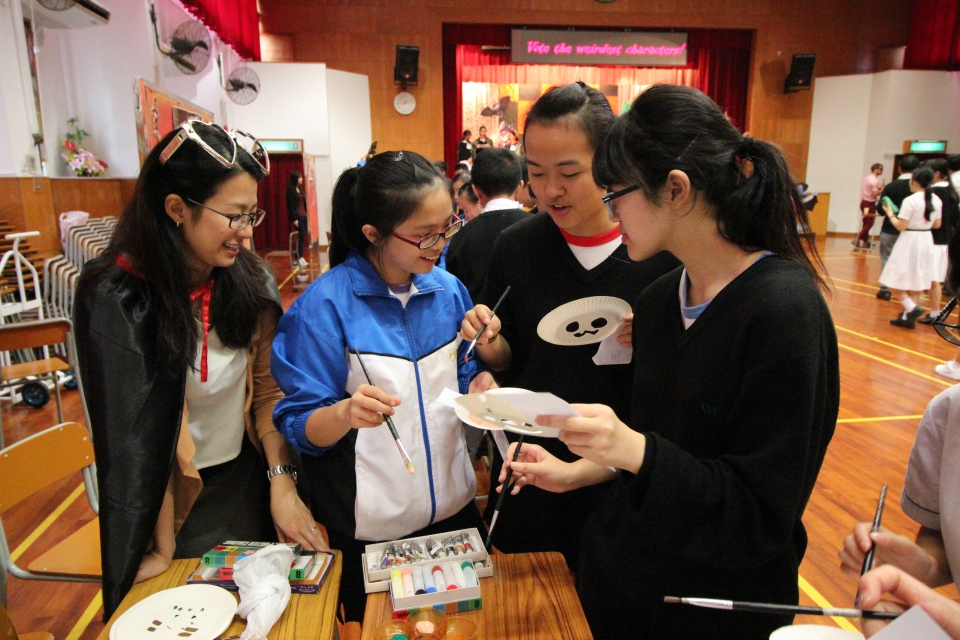 Entering the spookily decorated hall, we found scary characters and games all around. There were apple bobbing, matching games, treasure hunt, puzzle games, tongue twister and plenty more. The favorite, by far, was the face and hand painting. Many students also contributed to the atmosphere with spooky-paper-plate-monster-faces.